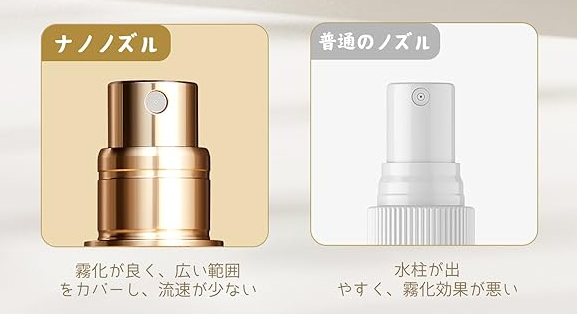 一般的に使われているノズルではなく、霧化の良い”ナノノズル”を使用しているためきめの細かい霧を出すことができます。