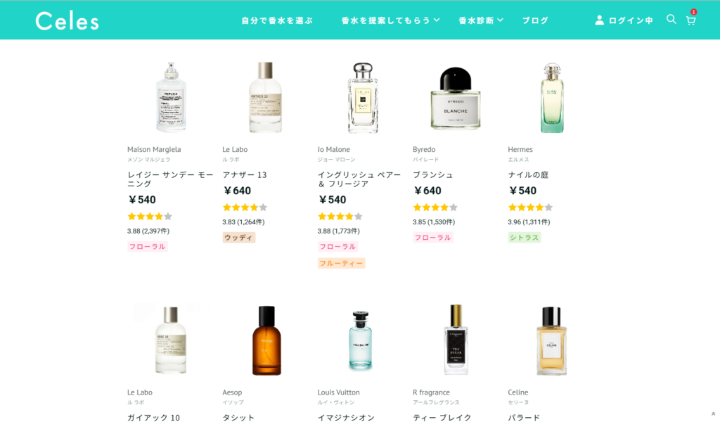 今日は香水を0円からお試しできるというCelesというサイトをご利用させていただきました。