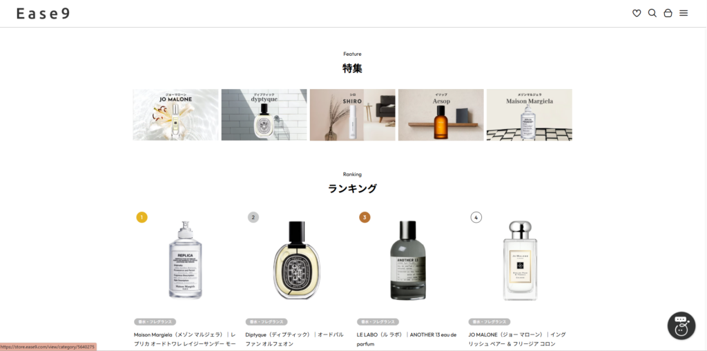 | 香水名(人気4種) | Ease9 | MELL | Celes | 香水の館 (楽天) | 量り売り香水.com |