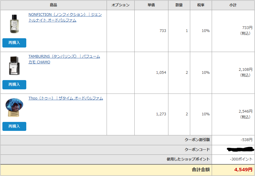| ジョーマローン イングリッシュペア | ¥757 | ¥533 | ¥1,373 | ¥660 | ¥980 |